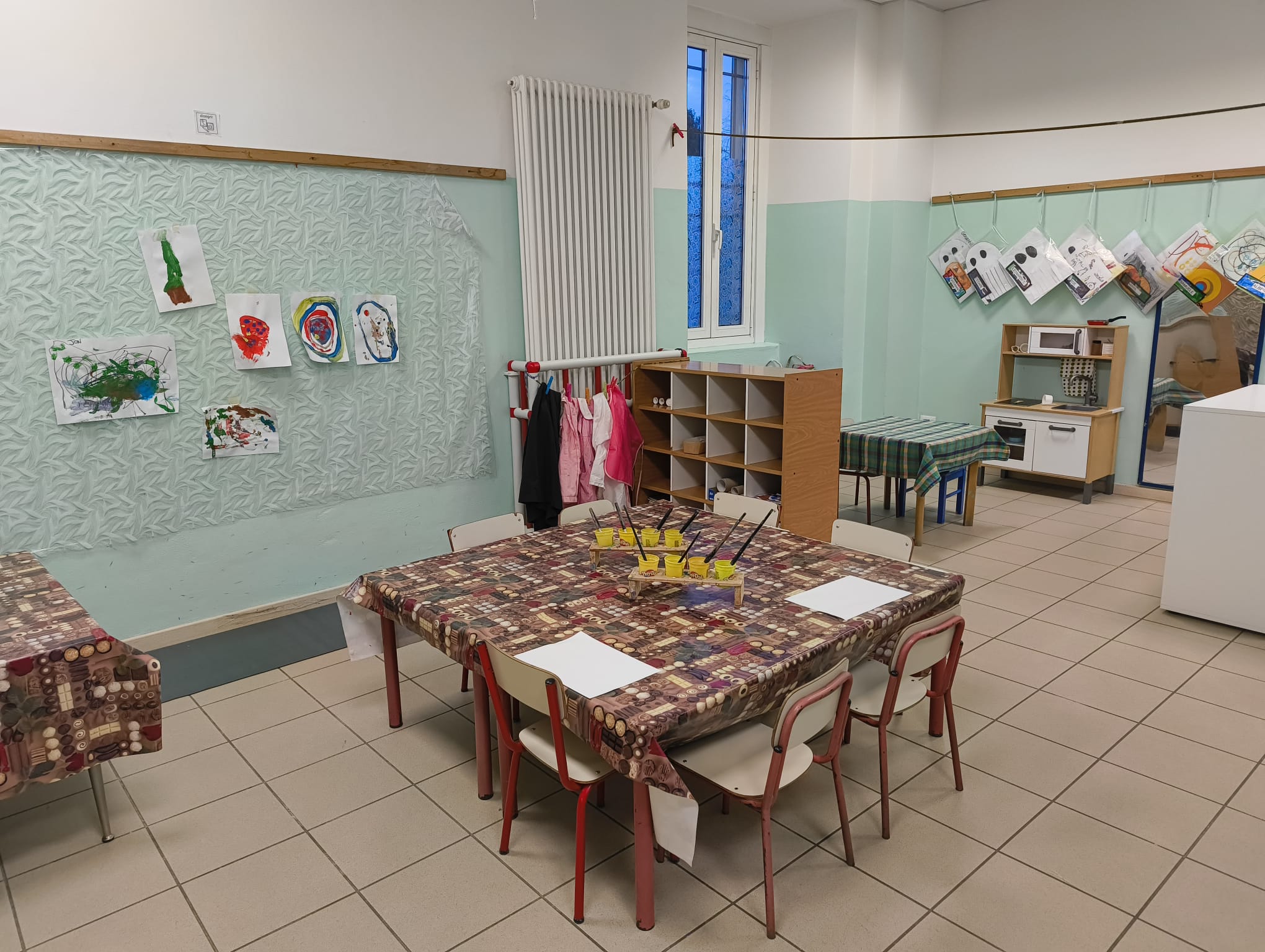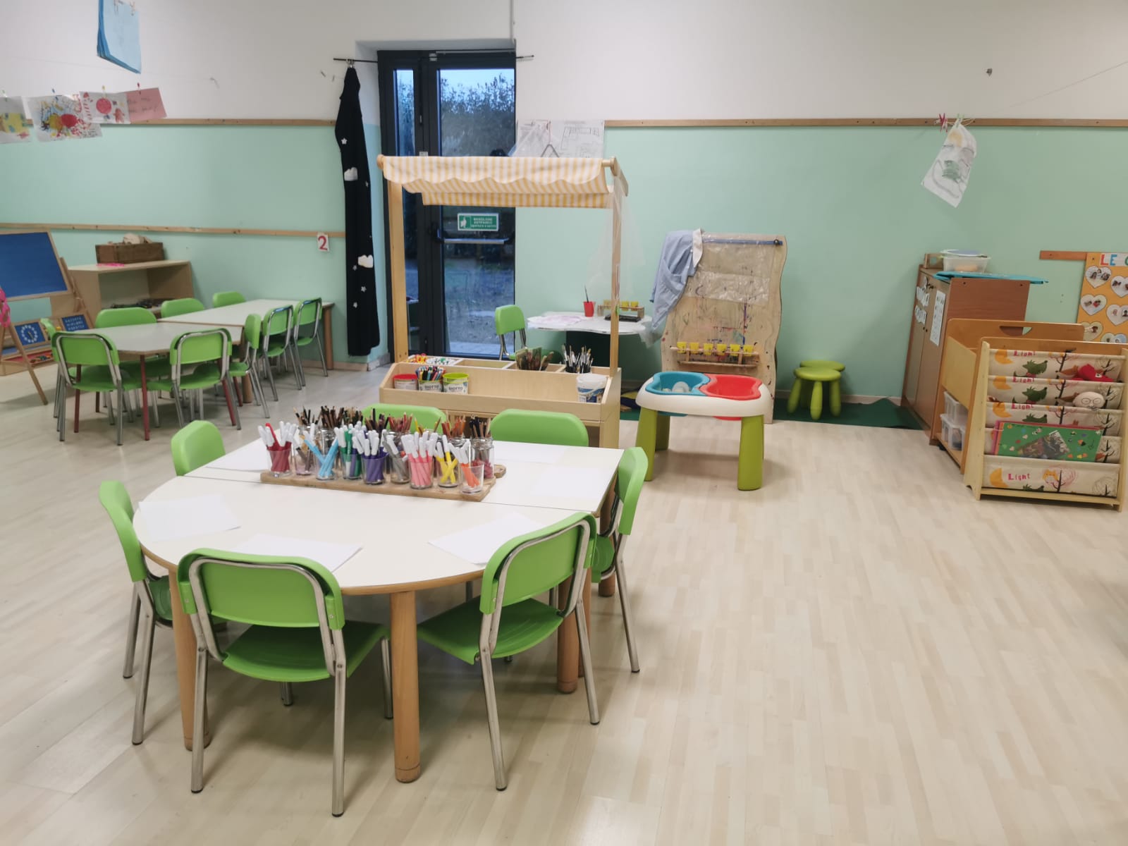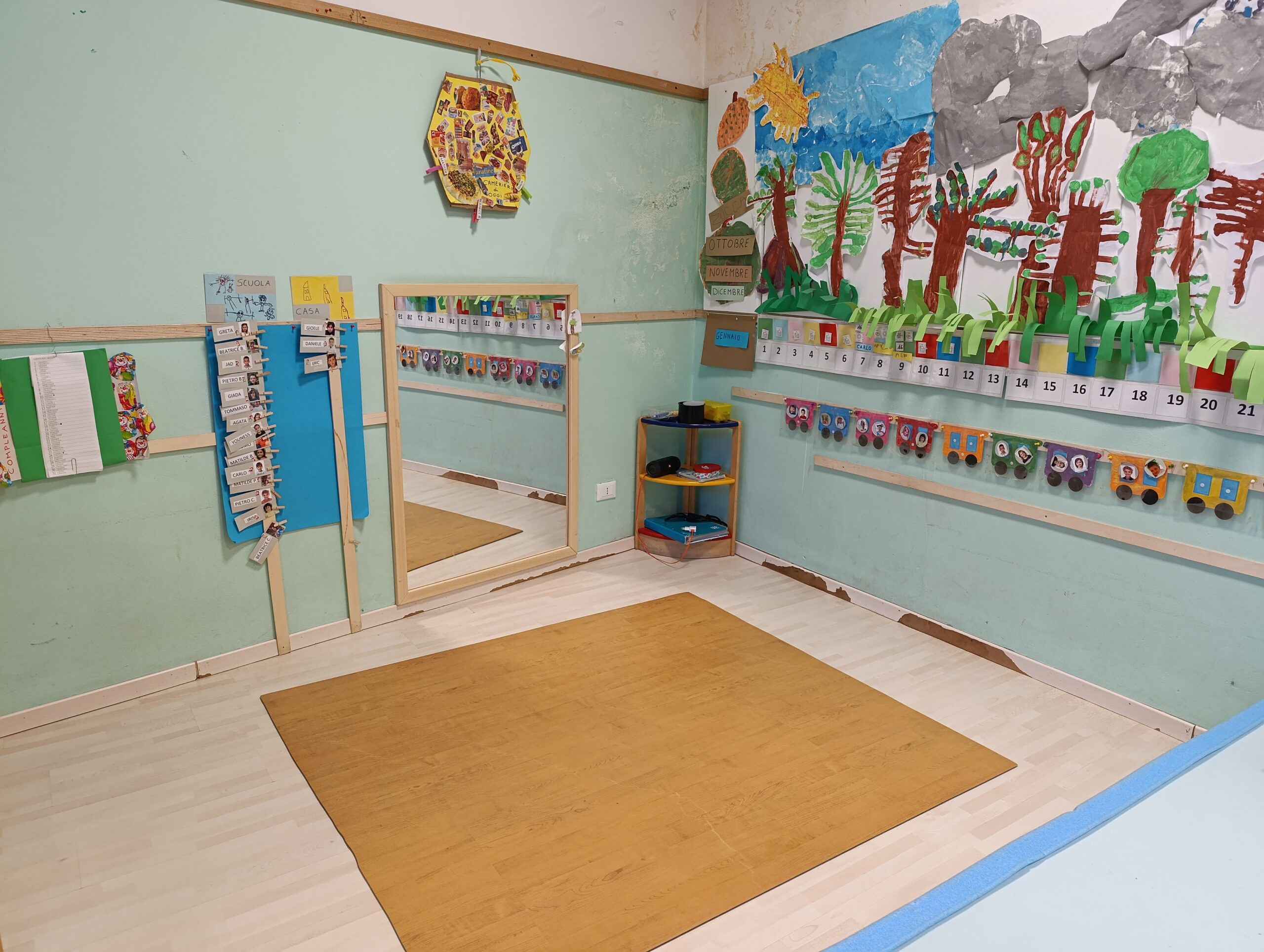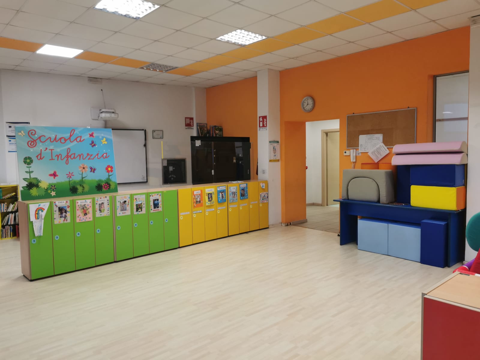 Al pianterreno si trovano un ampio atrio, utilizzato come aula polifunzionale, tre aule didattiche, ognuna con i propri servizi igienici.