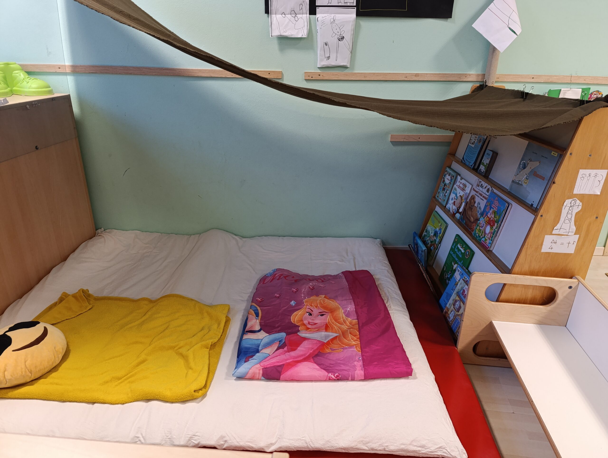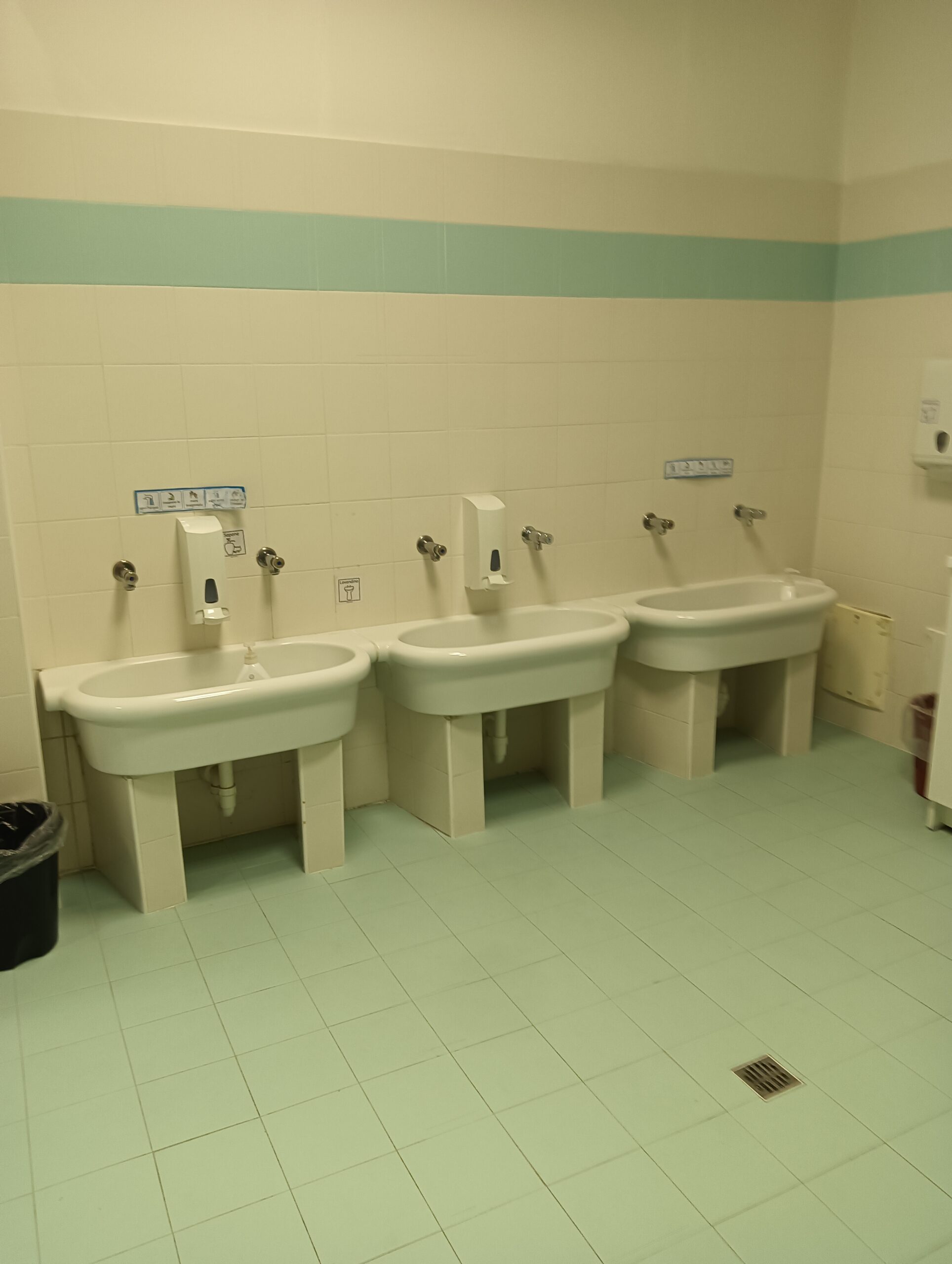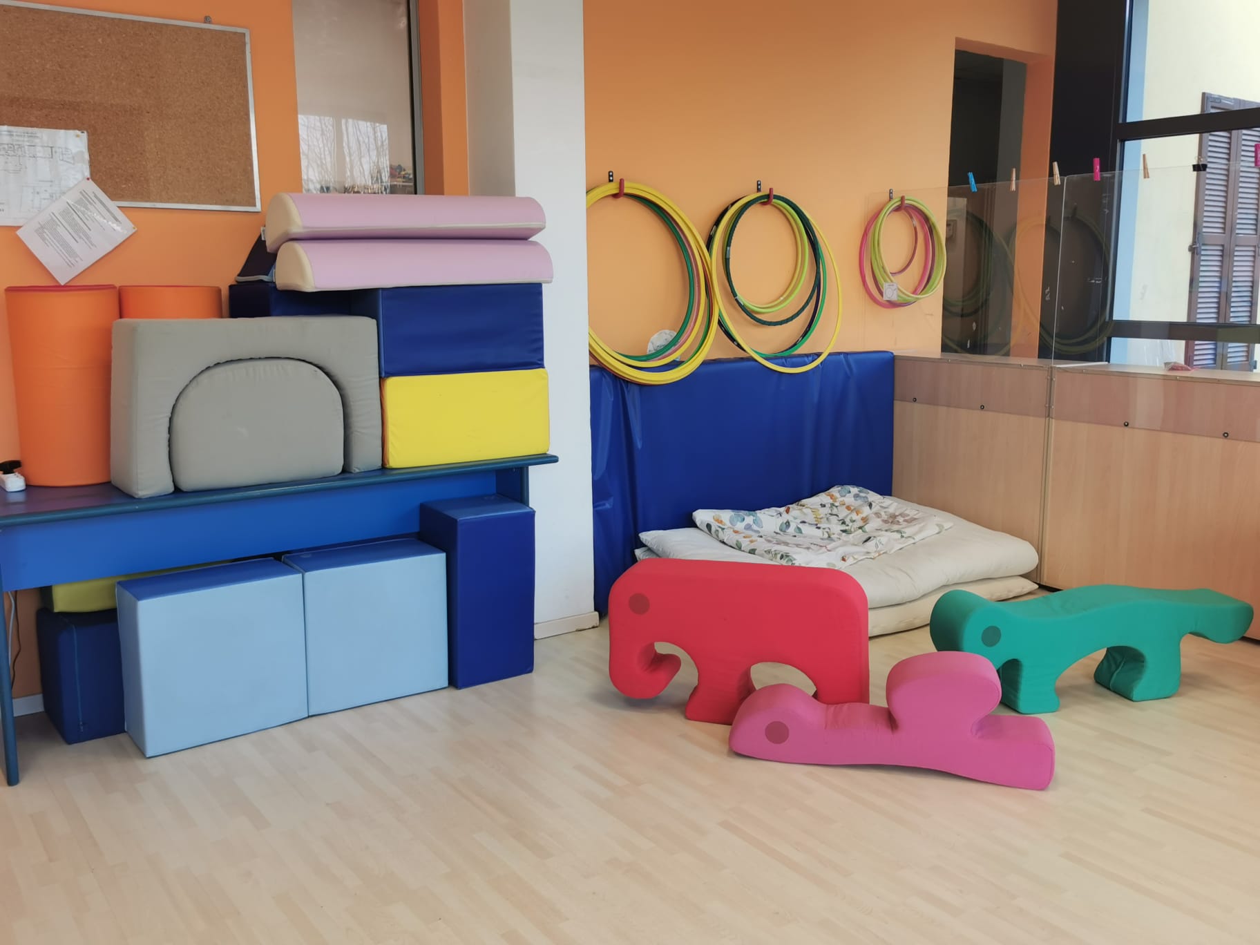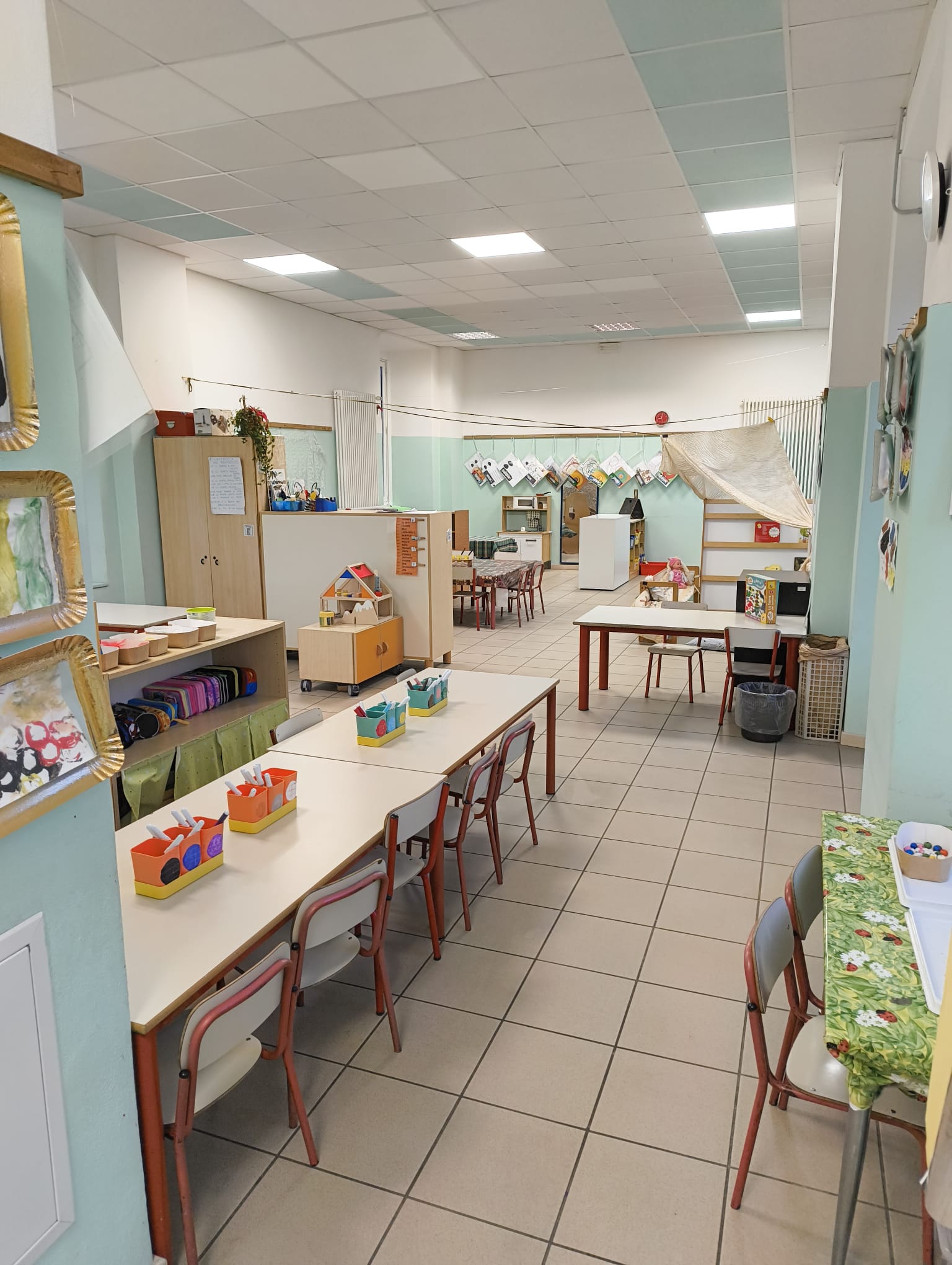 Al pianterreno si trovano un ampio atrio, utilizzato come aula polifunzionale, tre aule didattiche, ognuna con i propri servizi igienici.