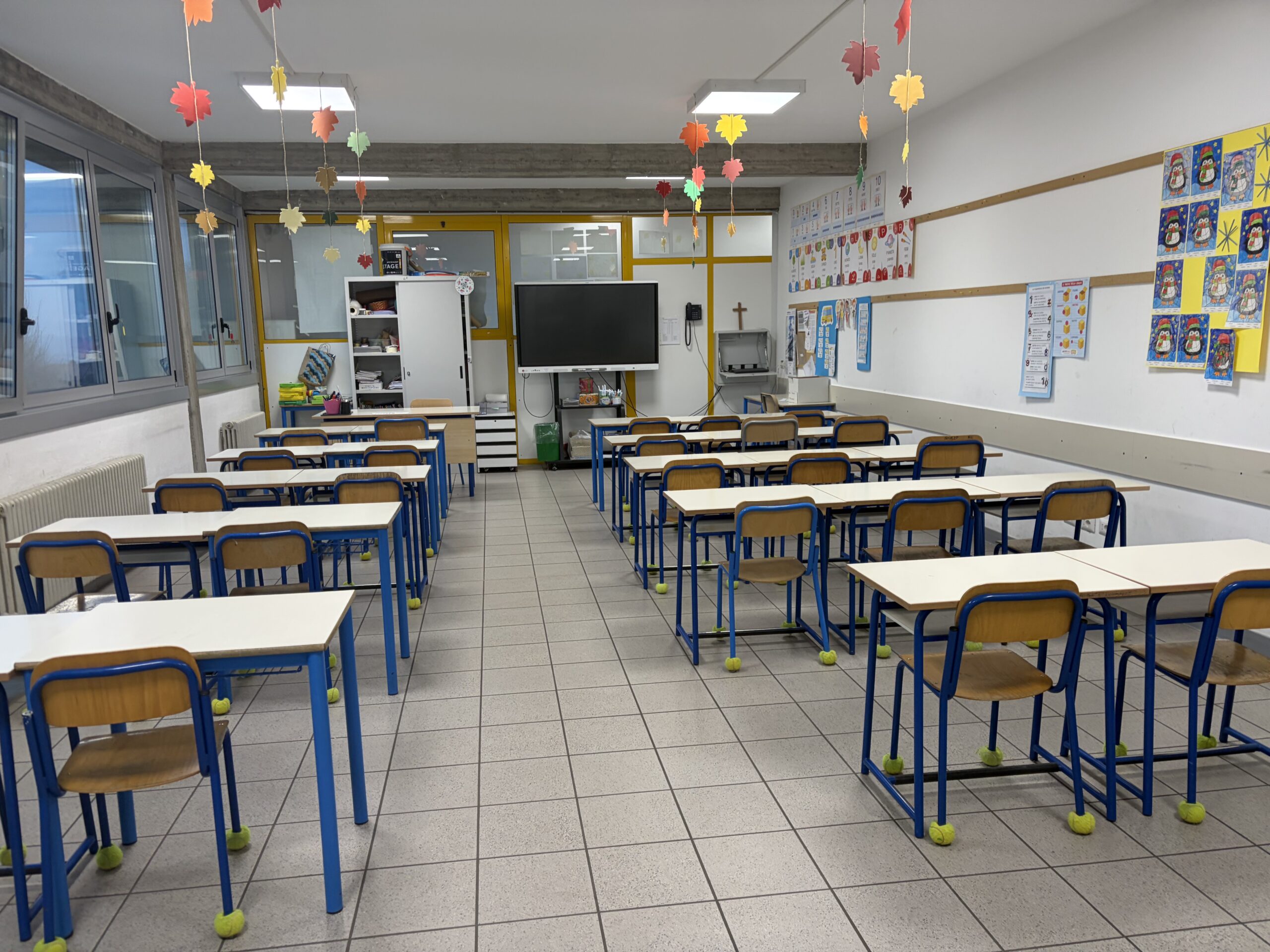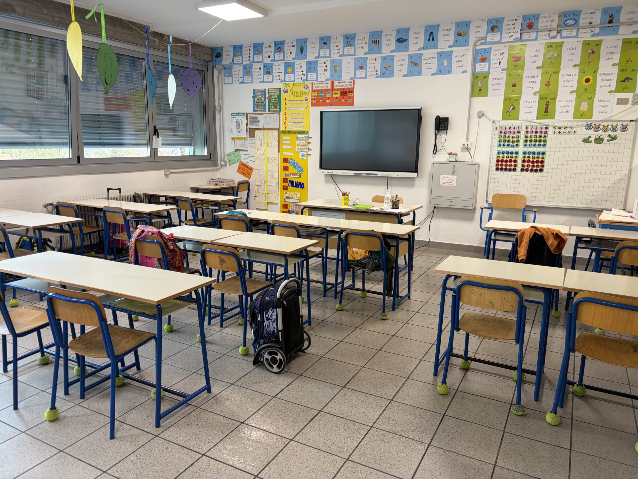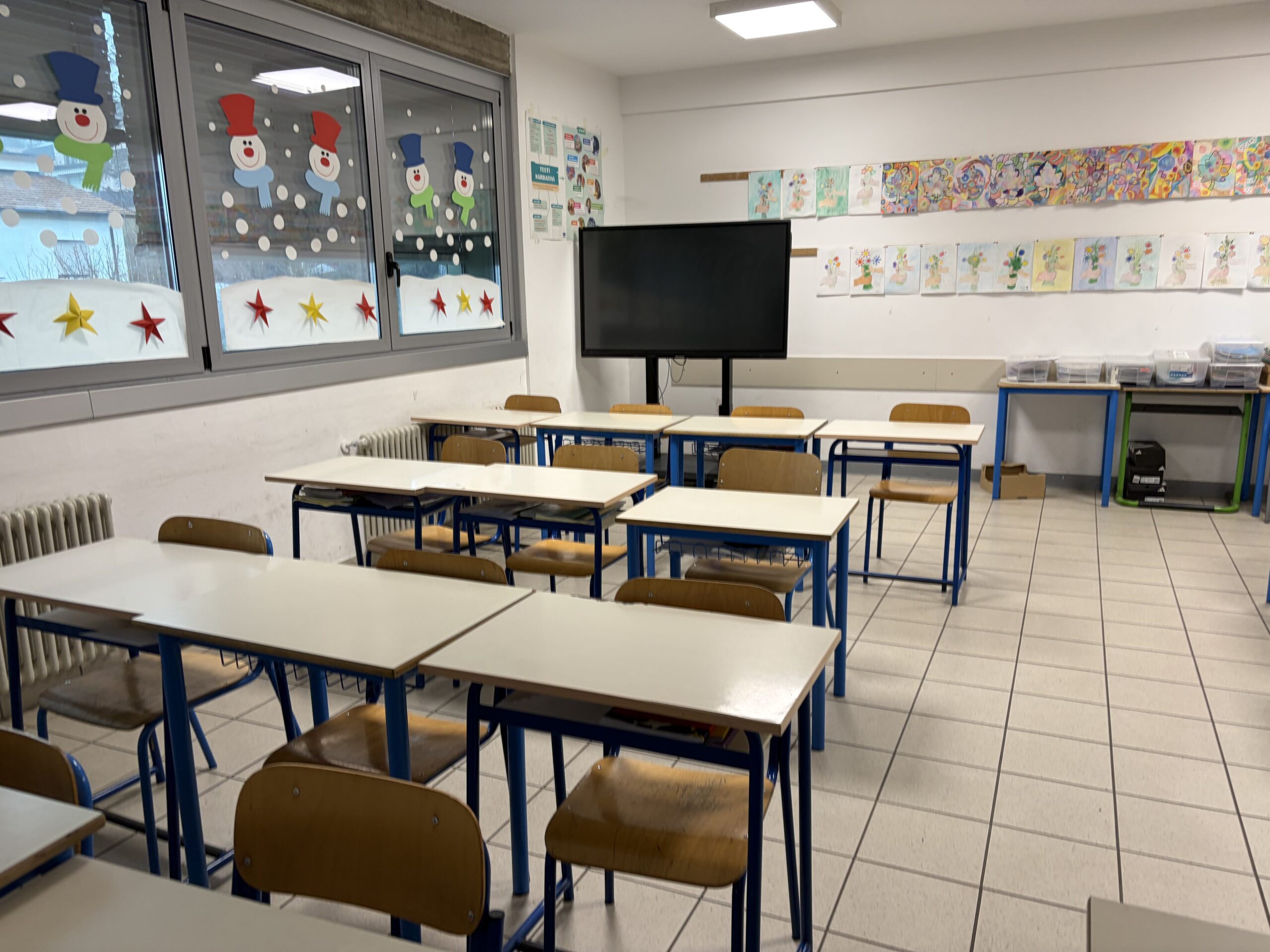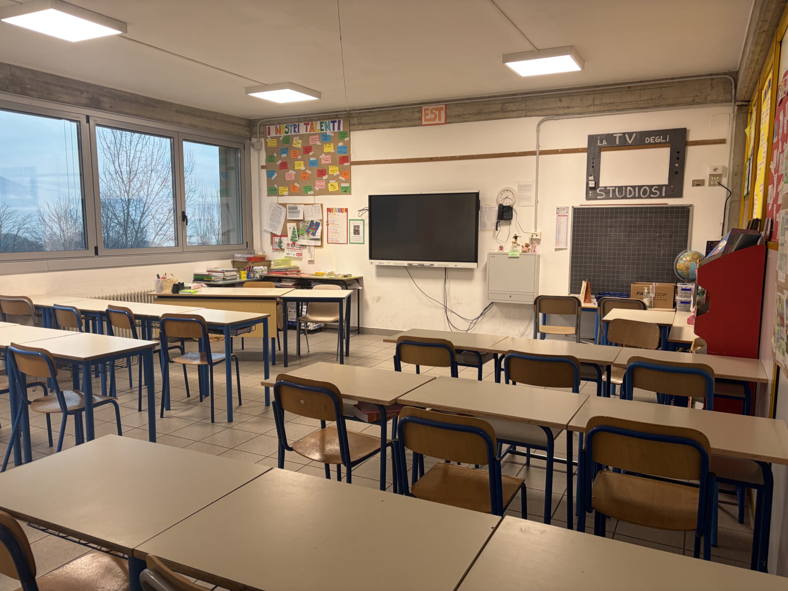 Ogni aula è dotata di Smart board e di citofono interno per le comunicazioni fra aule e uffici di segreteria.