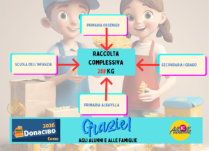 La raccolta del cibo dura un’intera settimana: ogni giorno il gesto del dono si ripete quando gli alunni portano un tipo di prodotto alimentare non deperibile diverso per chi ha più bisogno.